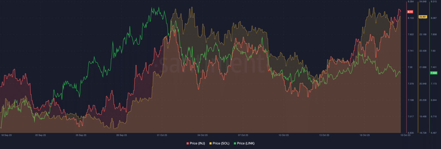At the time of writing, INJ was up 10% in the last 30 days. Left performance during the same period there was also an increase of 8.76%, while SOL had more at 18.42%.