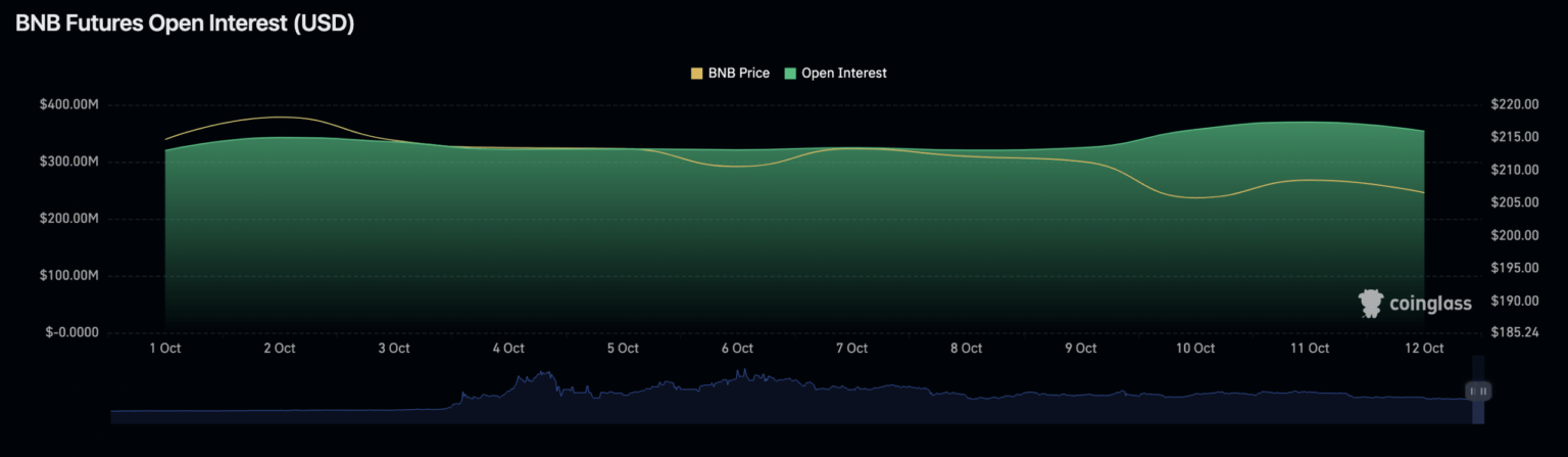 At $353.88 million at the time of writing, BNB’s open interest is up 11% since October 1, data from Mint glass showed.
