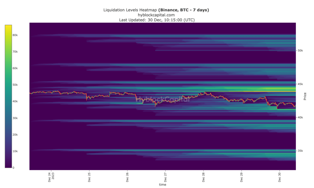 However, indications from the Liquidation HeatMap showed that it could be difficult for Bitcoin to reach $45,000.