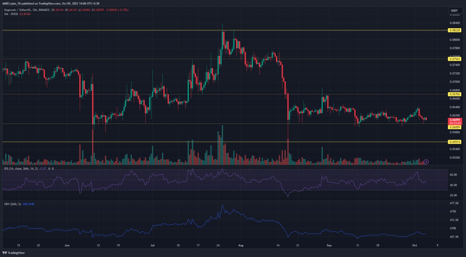 Even though the broader crypto market was green with Bitcoin [BTC] DOGE bears, trading above $27.5k, could break the bullish resilience near the $0.06 support in the near term.