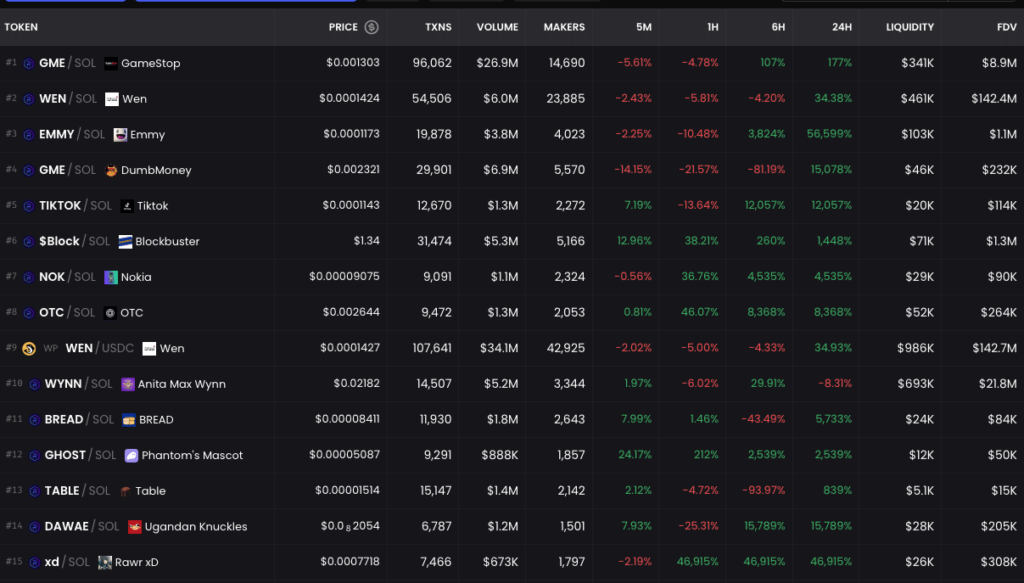 Using data from DEXScreener, we noticed that many Solana users were actively buying memes. And these meme coins don’t include the more popular coins like Bonk [BONK] and dog hat [WIF].