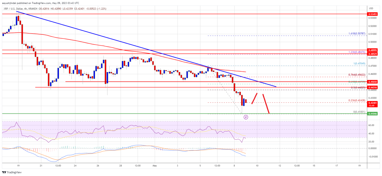 The next major support is near $0.40. If there is a downside break and a close below the $0.40 level, the price of XRP could add to losses. In the said case, the price might test the $0.380 support zone.